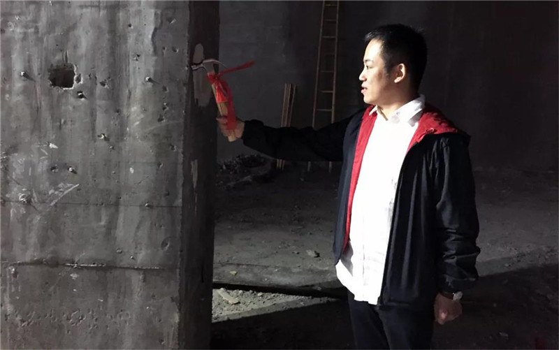 ▲吉时破土。王总亲自敲响开工第一锤,寓意着开工大吉,工程也有了完美的开始。